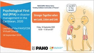 "Primeros auxilios psicológicos en la gestión de desastres en el Caribe". Segunda edición" es un curso de capacitación de doce horas de duración, que tiene por objeto dotar a los legos en la materia de los instrumentos necesarios para dar una respuesta inicial adecuada a las personas que experimentan una angustia psicológica secundaria a situaciones de crisis. El curso incluye consideraciones especiales sobre la forma de utilizar los conocimientos de PAP de manera segura tanto para el ayudante como para la persona que se encuentra en situación de peligro durante un brote de enfermedad, como la pandemia COVID-19.