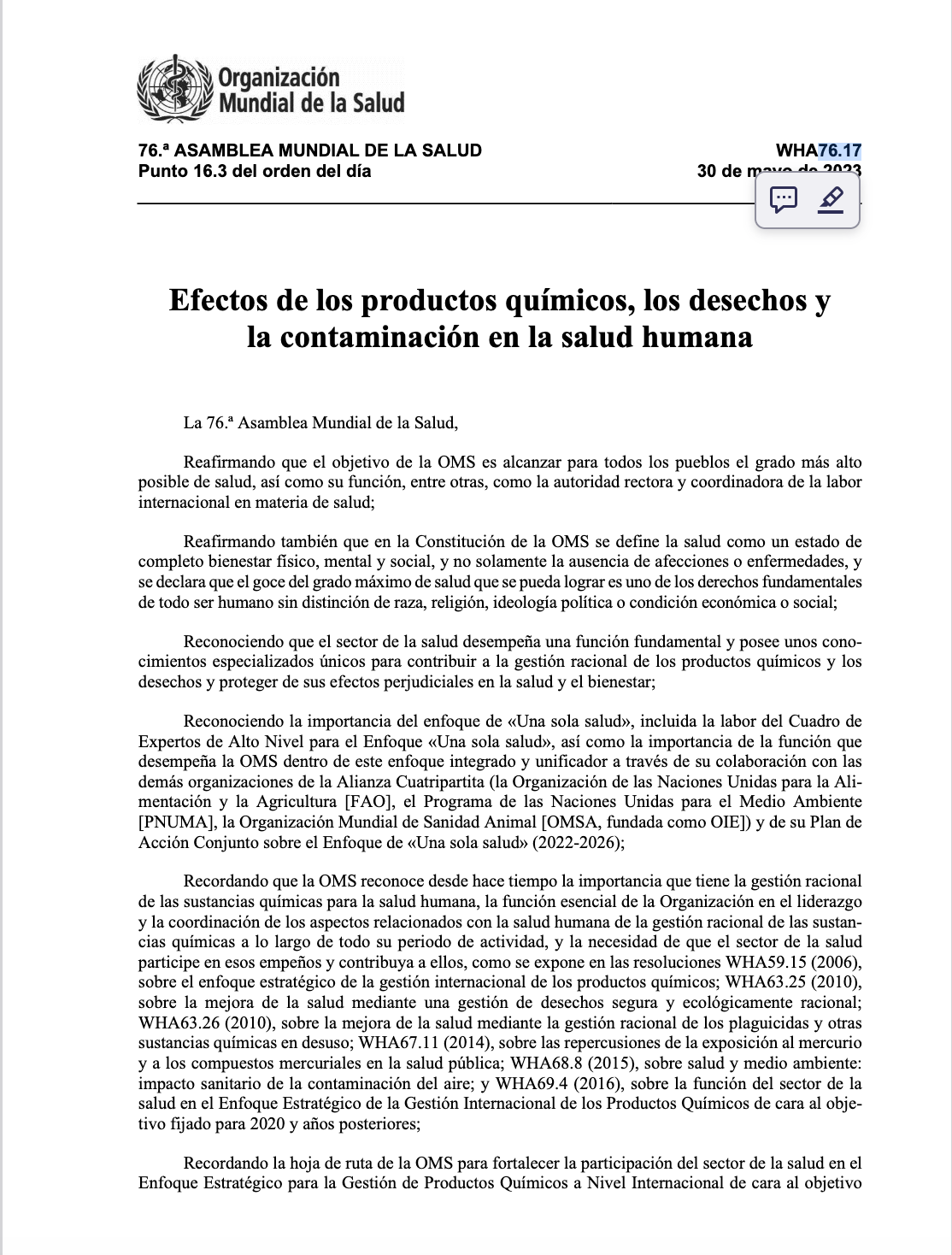 AMS76.17 Efectos de los productos químicos, los desechos y la contaminación en la salud humana