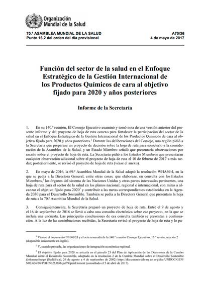 A70/36 Función del sector de la salud en el Enfoque Estratégico de la Gestión Internacional de los Productos Químicos de cara al objetivo fijado para 2020 y años posteriores
