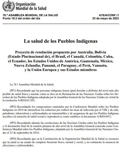 76.ª Asamblea Mundial de la Salud. La salud de los Pueblos Indígenas - Proyecto de resolución