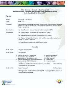 Taller Elaboración Estrategia Bolivia: Agenda, Santa Cruz