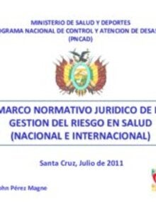 Taller Elaboración Estrategia Bolivia: Presentación Ministerio de Salud y Deportes, Marco Normativo Juridico de la Gestión del Riesgo en Salud