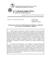 Estrategia y Plan de Acción Regionales sobre la Nutrición en la Salud y el Desarrollo, 2006-2015