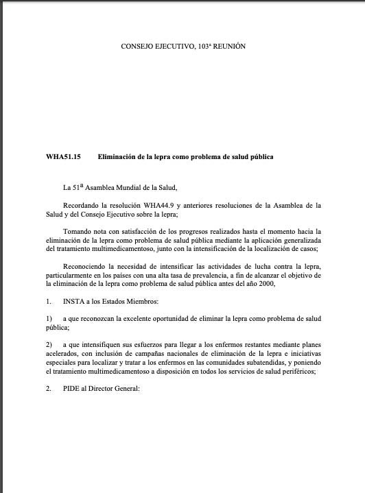WHA51.15 Eliminación de la lepra como problema de salud pública; 1998