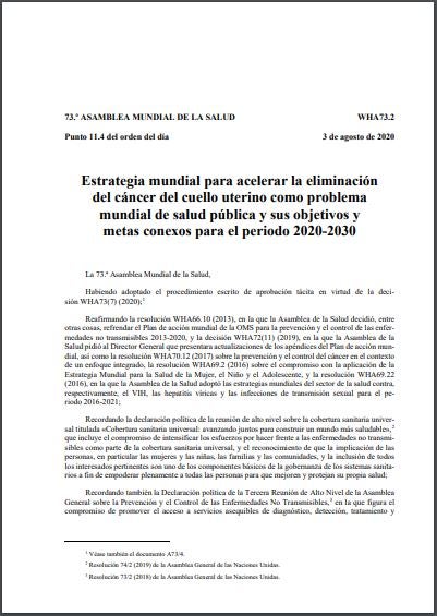 Estrategia mundial para acelerar la eliminación del cáncer del cuello uterino como problema mundial de salud pública y sus objetivos y metas conexos para el periodo 2020-2030