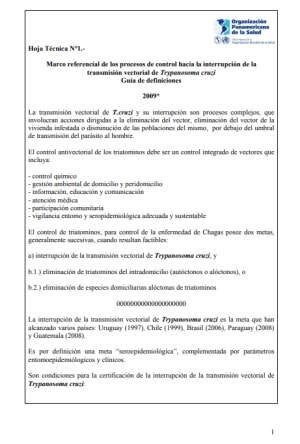 La transmisión vectorial de T.cruzi y su interrupción son procesos complejos, que involucran acciones dirigidas a la eliminación del vector, eliminación del vector de la vivienda infestada o disminución de las poblaciones del mismo, por debajo del umbral de transmisión del parásito al hombre.