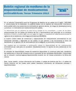 Boletín regional de monitoreo de la disponibilidad de medicamentos antimaláricos: Segunto trimestre 2013. Volumen 1. No. 3. Año 2013