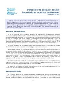 Ante la detección de poliovirus salvaje de tipo 1 (WPV1) en muestras ambientales en Brasil, la Organización Panamericana de la Salud (OPS) / Organización Mundial de la Salud (OMS) recomienda a los Estados Miembros de la Región de las Américas, a que continúen fortaleciendo la vigilancia de casos de parálisis flácida aguda para la detección precoz de cualquier caso sospechoso, así como que mantengan una elevada cobertura de inmunización contra polio.