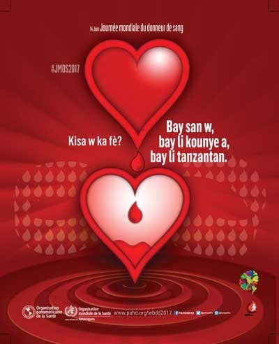 Poster (web): Kisa w ka fè? Bay san w, bay li kounye a, bay li tanzantan; 2017 (creole)