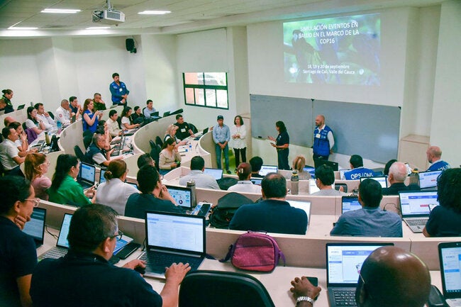 Como parte de los procesos de preparación y respuesta ante situaciones o emergencias en salud,, la Secretaría de Salud del Valle del Cauca, con apoyo de la OPS/OMS, Colombia realizó una simulación de emergencias multiamenaza a gran escala, entre el 18 y el 20 de septiembre, en la Universidad ICESI, en la ciudad de Santiago de Cali. El ejercicio contó con la participación de 150 personas de instituciones nacionales e internacionales, incluyendo el Ministerio de Salud y Protección Social, el Instituto Nacional de Salud, las Secretarías de Salud de Valle del Cauca, Cali, Buenaventura, Yumbo y Palmira, 17 Instituciones Prestadoras de Servicios de Salud, la Secretaría departamental de Gestión del Riesgo, representantes de la Policía Nacional, la Armada Nacional de Colombia, la Fuerza Aérea Colombiana, el Ejército Nacional de Colombia, un observador internacional del Departamento de Seguridad del Sistema de Naciones Unidas UNDSS y el acompañamiento de Emergencias de Salud (PHE) de la oficina Regional de la OPS/OMS.