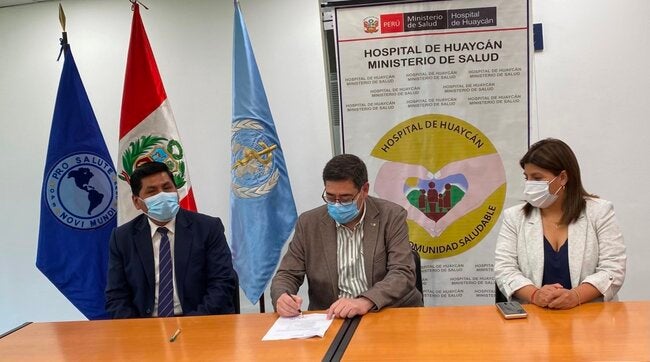 Lima 27 de noviembre de 2020.- La Organización Panamericana de la Salud continúa contribuyendo en la respuesta a la emergencia. Como parte de sus acciones, realizó una donación al Hospital de Huaycán en presencia de su director el Dr. Luis Manco Malpica y el Dr. Carlos Roberto Garzón, representante de la OPS en Perú.