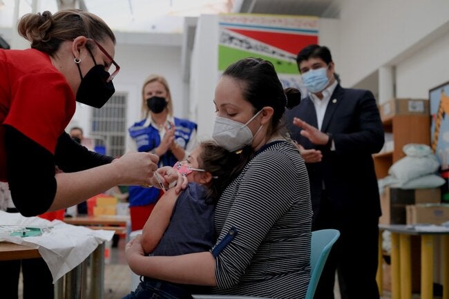San José, 10 de enero de 2022 (OPS/OMS). En compañía de autoridades nacionales, 20 niños y niñas con condiciones médicas predisponentes de alta complejidad recibieron hoy en el Hospital Nacional de Niños la primera dosis de la vacuna pediátrica contra la COVID-19. De esta manera, Costa Rica inicia oficialmente la vacunación de menores entre 5 y 11 años de edad de forma estratificada, dando prioridad a quienes tienen factores de riesgo. Esta semana se iniciará también con el grupo de entre 11 y 12 años y, posteriormente, se incluirá a las otras franjas etarias -hasta los 5 años- según la disponibilidad de vacunas pediátricas en el país.