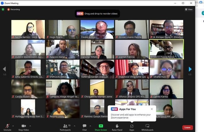 La Paz, 9 de noviembre de 2022 (OPS)- En el marco de la cooperación técnica que brinda la Organización Panamericana de la Salud/Organización Mundial de la Salud (OPS/OMS) al Estado Plurinacional de Bolivia, desde hace algunos días está en vigencia el desarrollo del Diplomado en Epidemiología con la Universidad Andina Simón Bolívar. Este diplomado se ejecuta en el contexto de las lecciones aprendidas por la emergencia por la COVID-19 que manda reforzar los sistemas de vigilancia epidemiológica.