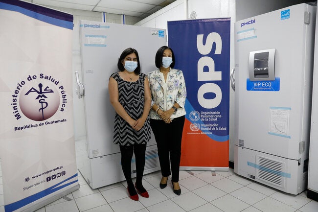 Durante la entrega, la Doctora Lilian Reneau-Vernon, Representante de país de la OPS/OMS en Guatemala, indicó “La OPS/OMS sigue comprometida en apoyar a Guatemala y a su población. Con esta donación se contribuye a reforzar la capacidad de almacenamiento de vacunas para seguir luchando contra la pandemia de COVID-19, en un momento donde se necesita seguir haciéndolo todo para incrementar los índices de vacunación, sobre todo en las comunidades rurales del país y apoyar al personal de salud con equipo de protección que permita evitar accidentes laborales durante el manejo de temperaturas de muy bajas.”