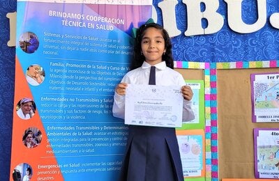 Asunción, 1 de diciembre del 2022.- En el marco de la alegría propia de la niñez, se llevó a cabo el martes 29 de noviembre el acto de premiación oficial del Concurso de dibujos “Mi escuela, un espacio seguro y saludable para mí, mi familia y mi comunidad”, realizado por la Organización Panamericana de la Salud/Organización Mundial de la Salud - OPS/OMS Paraguay, en coordinación con el Ministerio de Educación y Ciencias (MEC) y el Ministerio de Salud Pública y Bienestar Social (MSP y BS) de Paraguay. El certamen fue organizado como parte de las celebraciones del aniversario número 120 de la OPS.