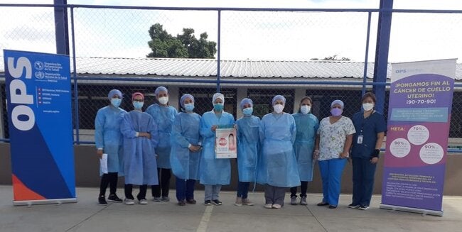 Tegucigalpa, 9 de septiembre de 2021(OPS/OMS). El Dr. Ricardo Rodríguez Buño, Asesor de Enfermedades no Transmisibles y Salud Mental de la OPS/OMS en Honduras acompañó al equipo técnico de la Secretaría de Salud brindando la segunda parte de la capacitación en Inspección Visual con Ácido Acético (IVAA) y tratamiento con termocoagulación a las médicas del módulo salud de Ciudad Mujer.