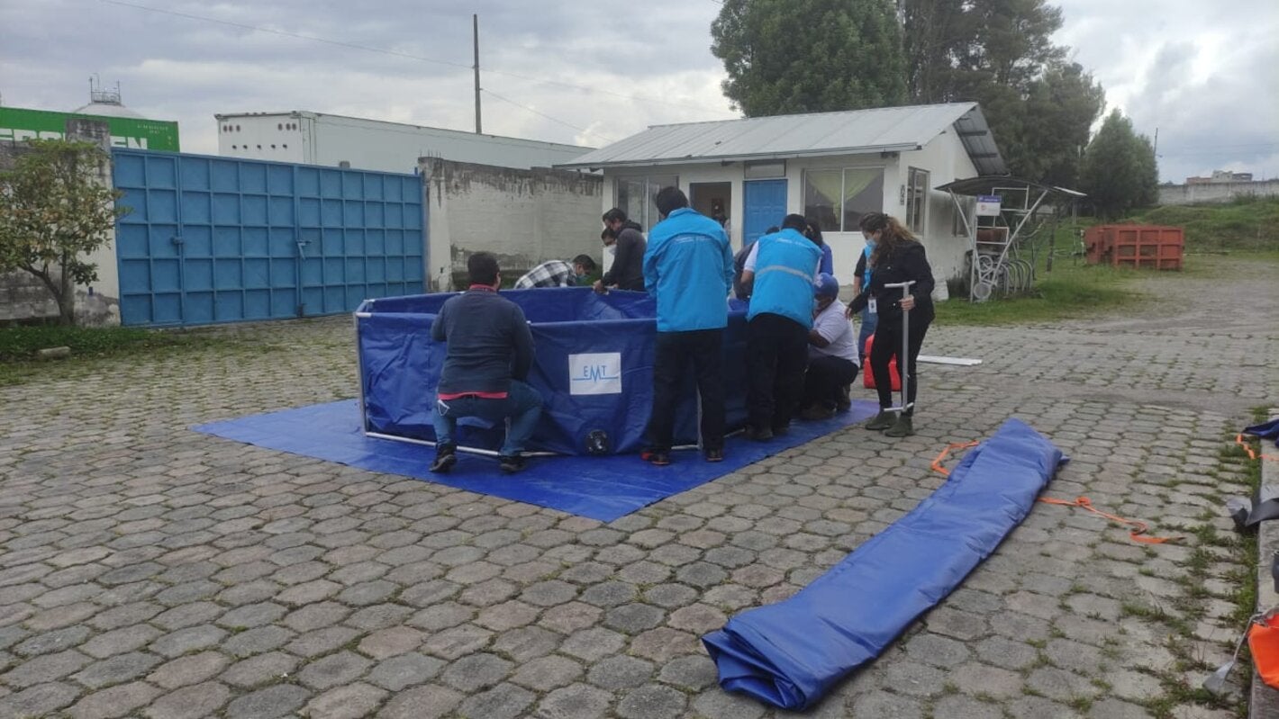 Quito, 8 de abril de 2022.- Del 05 al 08 de abril se realizó la capacitación, en modalidad presencial, dirigido a los Equipos Médicos de Emergencia (EMT por sus siglas en inglés) de los hospitales móviles del Ministerio de Salud Pública (MSP) sobre el manejo de kits de abastecimiento de aguas y gestión de residuos.