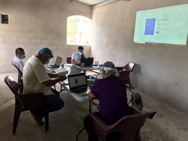 Tegucigalpa, 11 de septiembre de 2020. La Dirección General de Recursos Humanos de la Secretaría de Salud, el Colegio Médico de Honduras y la OP/OMS capacitaron a 151 médicos en servicio social que serán asignados a la red de servicios del primer y segundo nivel de atención, para el combate a la COVID-19.