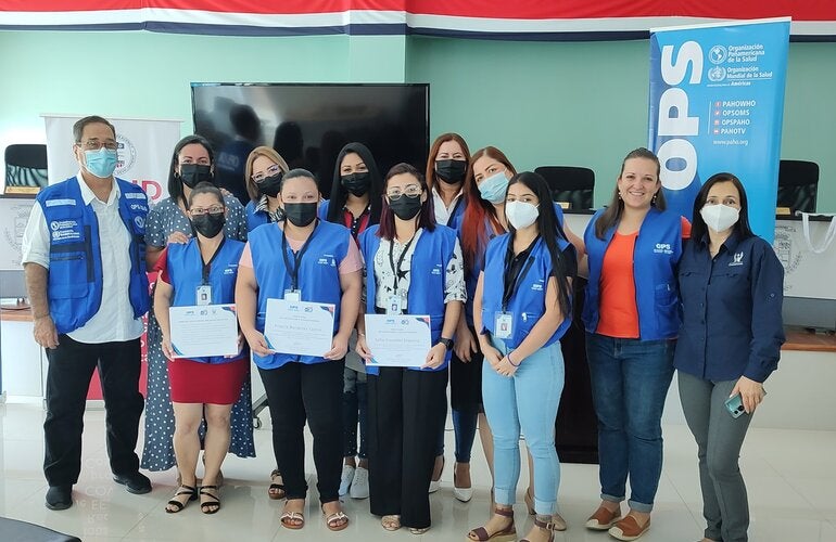 Adicionalmente, en conjunto con la Fundación Ciudadanía Activa -socio implementador del proyecto- se entregó un reconocimiento a las 10 lideresas del cantón de Corredores que, tras ser capacitadas sobre temas relacionados con salud, visitaron regularmente a familias de su comunidad para compartir la información, asumiendo así un rol clave en la promoción de la salud comunitaria en temas como salud mental, enfermedades transmisibles, vacunación, COVID-19, migración y salud, entre otros.