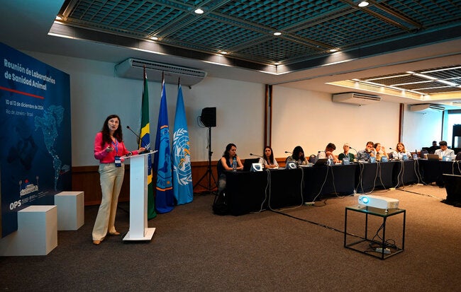 Río de Janeiro, 12 de diciembre de 2024 (PANAFTOSA/SPV-OPS/OMS) – Durante 3 días, los laboratorios de sanidad animal de la Comisión Sudamericana para la Lucha contra la Fiebre Aftosa (COSALFA), compartieron criterios técnicos sobre el diagnóstico de fiebre aftosa en su contexto actual de estatus libre de la enfermedad, cuya erradicación está considerada dentro de la Iniciativa de Eliminación de la OPS, a través del liderazgo del laboratorio del Centro Panamericano de Fiebre Aftosa y Salud Pública Veterinaria de la Organización Panamericana de la Salud (OPS), reconocido como laboratorio de referencia para aftosa y estomatitis vesicular por la Organización Mundial de Sanidad Animal (OMSA).