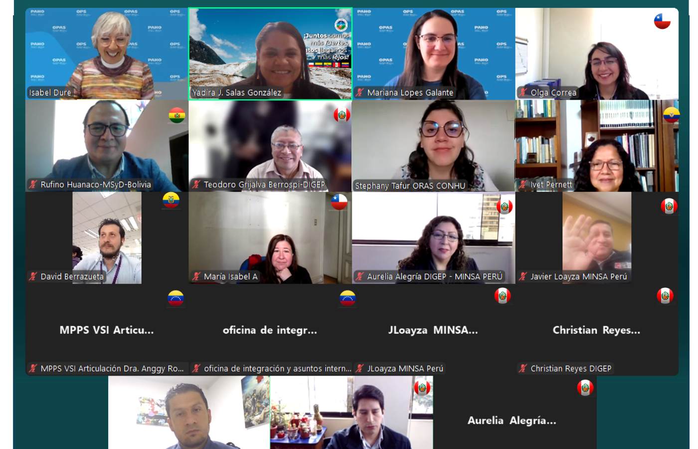 La reunión, coordinada por Yadira Salas, Coordinadora del Comité Andino de Recursos Humanos en Salud, e Isabel Duré, consultora internacional de recursos humanos para la salud de la OPS, revisó los avances nacionales en el llenado de la matriz y los desafíos identificados con algunas profesiones. Se acordó continuar con reuniones bilaterales durante septiembre y octubre, con miras a consensuar una versión consolidada de la Matriz Mínima en un próximo encuentro subregional.