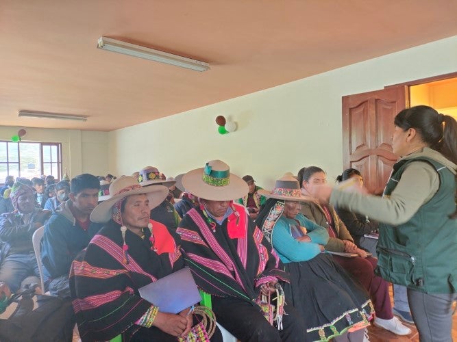 Cochabamba, 12 de abril de 2023 (OPS)- Indígenas y campesinos del Gobierno Autónomo de Raqaypampa y de varias comunidades rurales de la zona andina del departamento de Cochabamba fueron sensibilizados sobre la efectividad y seguridad de las vacunas. El proceso fue posible gracias a la visita del Programa Ampliado de Inmunización PAI del Servicio Departamental de Salud SEDES de Cochabamba que realizó la supervisión de las coberturas de vacunación y el monitoreo de la aceptación de la inmunización a través de la conversación con la población y el desarrollo de reuniones de escucha activa, capacitación y orientación a las autoridades originarias y locales, hombres, mujeres y jóvenes. Esta visita contó con el apoyo técnico de la Organización Panamericana de la Salud/Organización Mundial de la Salud (OPS/OMS).
