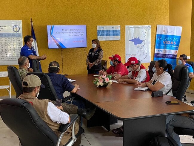 San Pedro Sula, 14 de noviembre 2020 (OPS/OMS).-Como parte de la respuesta ante la emergencia que se vive en la zona norte tras el paso de la tormenta tropical Eta, la Secretaría de Salud con el apoyo de la Organización Panamericana de la Salud/Organización Mundial de la Salud (OPS/OMS), desarrollaron una reunión de la Mesa Sectorial de Salud, con el objetivo de articular las acciones en el departamento de Cortés.
