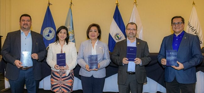 El Representante de la OPS/OMS, Dr. Giovanni Escalante junto a representantes del Ministerio de Salud, ISSS y World Visión realizaron el lanzamiento de la Política Nacional de Promoción de la Salud, para el Sistema Nacional Integrado de Salud (SNIS).