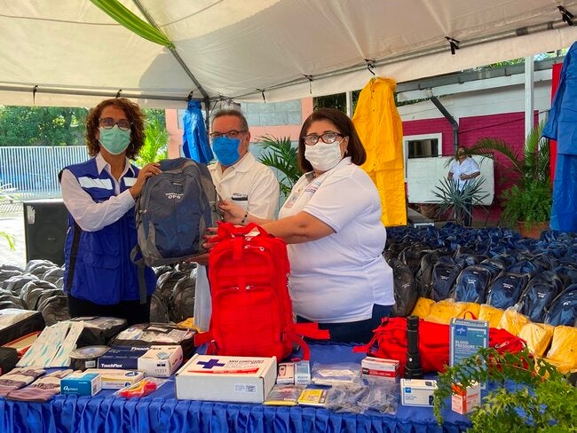 Esta donación consiste en medicamentos, Equipos de Protección Personal (EPP) e insumos médicos; obtenidos por medio de la ONG Direct Relief. Además, con fondos de la OPS se equipará a 950 Equipos de Salud Familiar y Comunitaria (ESAF) con mochilas de emergencias médicas para el personal de salud que se desplaza a las diferentes comunidades de difícil acceso y afectadas por los huracanes. Las mochilas están dotadas con EPP, tensiómetros, estetoscopios, oxímetros, termómetros digitales, linternas de mano, capotes impermeables, botiquín de primeros auxilios, alcohol gel y vendas para fracturas. Esto beneficiará a las personas que habitan en las zonas afectadas por los huracanes.