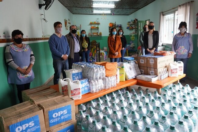 Varios productos fueron entregados este viernes en el jardín maternal “El Honguito” de la ciudad argentina de Mercedes, en una actividad de la que participó la secretaria de Inclusión Social de la Nación, Laura Alonso; el intendente del municipio, Ignacio Ustarroz; el asesor de Sistemas y Servicios de Salud de la OPS/OMS Argentina, Javier Uribe, y funcionarios del Centro Nacional de Organizaciones de la Comunidad (CENOC), entre otros.
