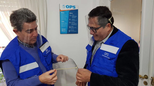 Viernes 15 de mayo de 2020.- Este viernes la Organización Panamericana de la Salud (OPS) , la Universidad de la República, la Universidad del trabajo del Uruguay y organizaciones de la sociedad civil entregaron a las autoridades del Ministerio de Salud Pública 21.000 protectores faciales para uso de personal de salud de prestadores públicos y privados.