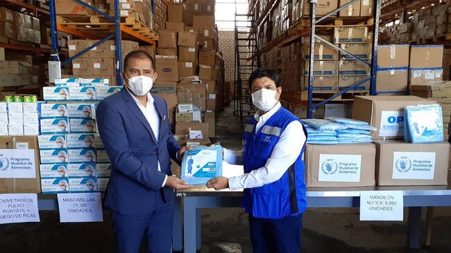 Lima, 15 de julio de 2020.- La Organización Panamericana de la Salud entregó una importante donación de equipos de protección personal y oxímetros de pulso a la Dirección Regional de Salud en el marco del proyecto “Medidas Urgentes de contención de la propagación de la COVID-19 y fortalecimiento de capacidades del GORE Áncash” implementado por la OPS y el Programa Mundial de Alimentos (WFP por sus siglas en inglés).
