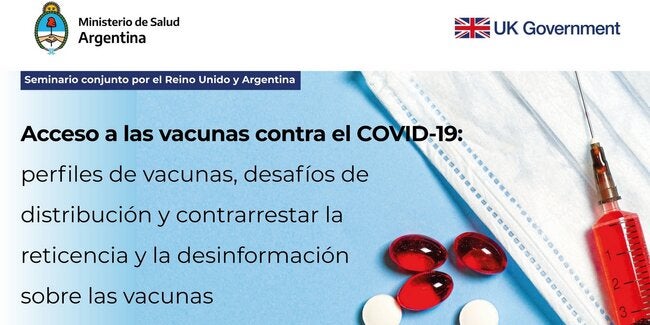 Buenos Aires, diciembre de 2020.- El Ministerio de Salud de Argentina junto con el Gobierno del Reino Unido organizaron el webinar conjunto “Acceso a las vacunas contra el COVID-19: perfiles de vacunas, desafíos de distribución y contrarrestar la reticencia y la desinformación sobre las vacunas”. En ese contexto, la Organización Panamericana de la Salud (OPS/OMS) facilitó el panel sobre los avances de los planes de vacunación en la región de las Américas y de lo relacionado con la infraestructura humana y física.
