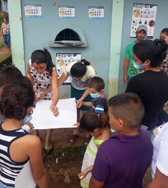 protección civil (COPECO, SEDIS), personal técnico de ONG´s y la red de colaboradores voluntarios de los municipios priorizados, guardando las medidas de bioseguridad: distanciamiento físico, uso de mascarillas y otros.
