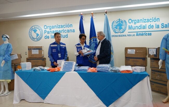 16 de marzo del 2020.La Representación de OPS en Nicaragua entregó al Ministerio de Salud, equipos de protección personal (EPP) y pruebas para coronavirus, a fin de responder de forma efectiva en la etapa de contención. Estos equipos como lentes, mascarillas, guantes, batas, bolsas de bioseguridad y otros equipos esenciales, cumplen con estándares internacionales de calidad para brindar protección al personal de salud que esté en contacto con pacientes sospechosos por coronavirus.