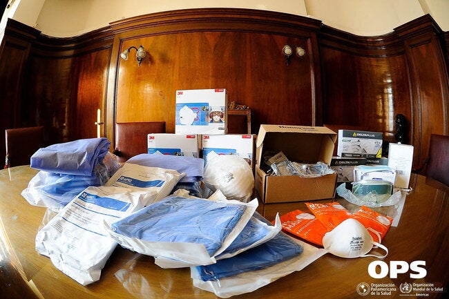 Estos kits de protección destinados a los trabajadores del sector sanitario, que incluyen batas, mascarillas, guantes y bolsas de bioseguridad, entre otros elementos específicos, forman forman parte de la donación que la OPS realizó al país, tras la solicitud del Ministerio de Salud Pública (MSP).