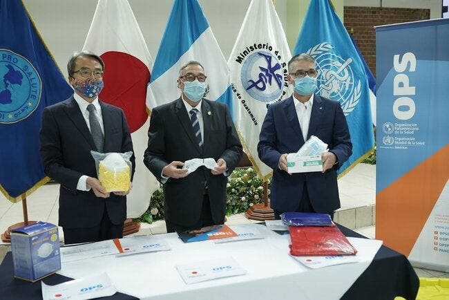 Esta donación forma parte de la cooperación de Japón a Guatemala, a través de la OPS/OMS por USD 243,500. La contribución regional de USD 2,727,272 por parte del Gobierno de Japón para la respuesta a la pandemia por la COVID-19 beneficiará a Guatemala, Brasil, Bolivia, Chile, México, Panamá, Paraguay, Perú y Venezuela.