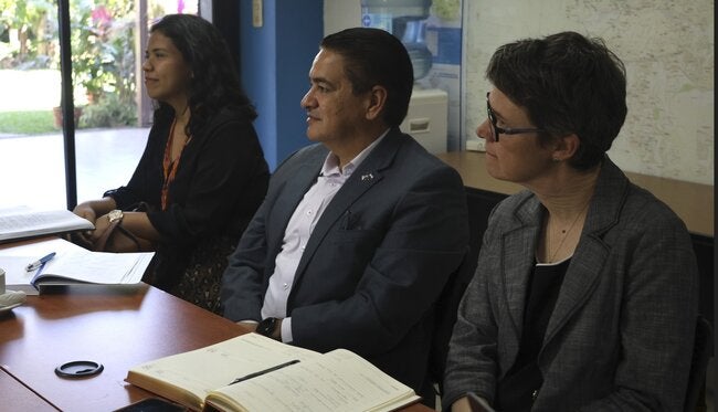 La comitiva de los CDC estuvo conformada por la Dra. Emily Zielinski-Gutierrez, directora de la Oficina de los CDC Centroamérica, y Dra. Judith Quintanilla, Especialista en Gestión de Proyectos de Servicios de Salud Pública de USAID.