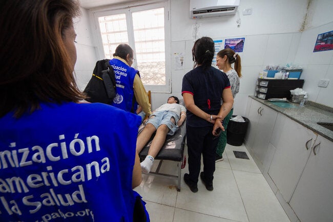 Otra contribución relevante estuvo vinculada a la seguridad de los pacientes y trabajadores de salud a través de la prevención de infecciones asociadas a la atención sanitaria. En el Instituto Nacional de Ciencias Neurológicas, la OPS brindó apoyo técnico durante el I Curso de Observadores de Higiene de Manos, organizado por la oficina de epidemiología. En este espacio se desarrollaron ponencias sobre la importancia de la higiene de manos como estrategia multimodal para la prevención de infecciones, el control de la resistencia antimicrobiana y la implementación de precauciones estándar en la atención. Estas acciones son esenciales para garantizar entornos seguros tanto para los pacientes como para el personal de salud.
