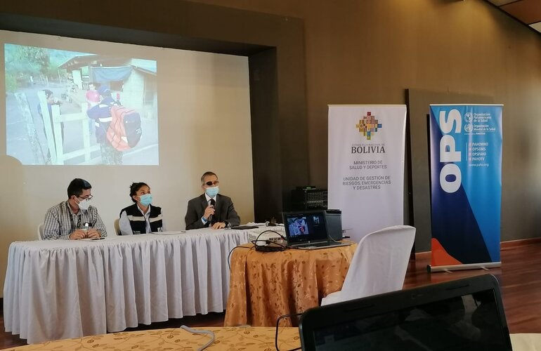 La Organización Panamericana de la Salud/Organización Mundial de la Salud (OPS/OMS) coopera en este cometido, así como en la actualización del formulario de Evaluación de Daños y Análisis de Necesidades en salud (EDAN) para apoyar al Ministerio de Salud y Deportes a dar respuesta oportuna y eficaz, articulada con los diferentes niveles de gobierno.