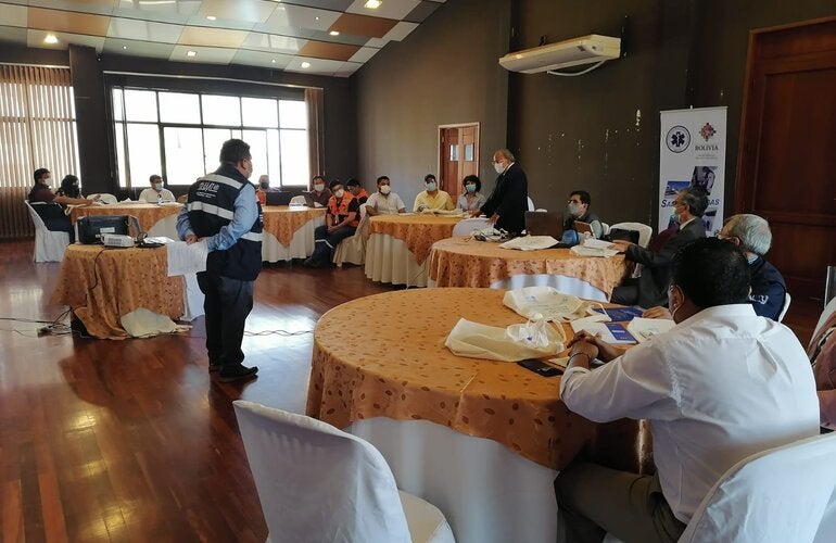Cochabamba, 15 de octubre de 2021 (OPS)- Autoridades del gobierno nacional, de las instancias departamentales y municipales, reunidos en un taller en Cochabamba este 14 y 15 de octubre, actualizaron el Plan Nacional de Emergencias y Desastres en previsión a futuras situaciones y en el marco de la gestión de riesgos.