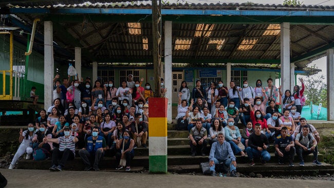 Bogotá, noviembre 16 de 2021. Durante cinco días, en el corregimiento El Diviso, en Barbacoas (Nariño) se realizó la formación de 80 jóvenes y lideresas sociales del pueblo indígena Awá como multiplicadores de mensajes de prevención de la enfermedad en tiempos de pandemia. La capacitación estuvo a cargo del Instituto Departamental de Salud de Nariño (IDSN), la Universidad de los Andes, la Organización Indígena Unipa y la Organización Panamericana de la Salud (OPS/OMS), en Colombia.