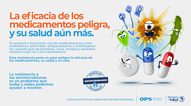 Como parte de las acciones de educación, el Ministerio de Salud y OPS/OMS han elaborado una campaña para redes sociales, en la cual se explica a la población en qué consiste la resistencia a los antimicrobianos y se brindan recomendaciones prácticas para ayudar a frenarla.