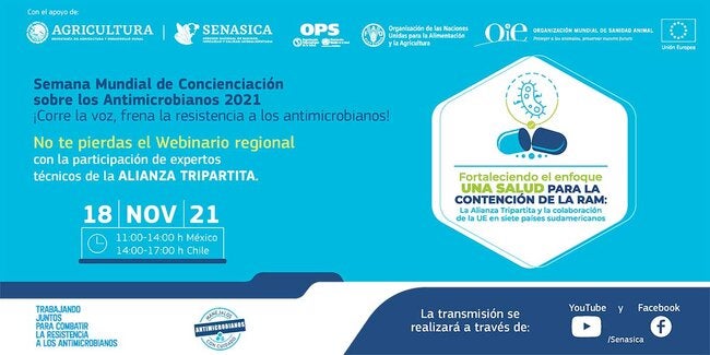 Así mismo, es una de las acciones programadas por el Servicio Nacional de Sanidad, Inocuidad y Calidad Agroalimentaria –Senasica, de México, en su calidad de Centro de Referencia FAO para la RAM y colaborador de OPS y OIE en diferentes disciplinas requeridas en la respuesta a la RAM, para la celebración de la Semana WAAW y su transmisión se hará a través de las redes sociales del Senasica entre las 11:00 y las 14:00, hora de la Ciudad de México.