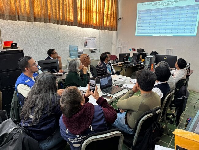 La asistencia técnica proporcionada por la OPS/OMS se centra en el análisis subnacional de la situación epidemiológica, con el propósito de orientar la toma de decisiones basada en evidencia y priorizar intervenciones en áreas con mayor riesgo. Asimismo, se brinda apoyo técnico a los equipos y brigadas del nivel local para fortalecer la búsqueda activa institucional y comunitaria, la investigación epidemiológica de campo y la implementación oportuna de medidas de control, incluyendo el bloqueo vacunal y el barrido documentado.