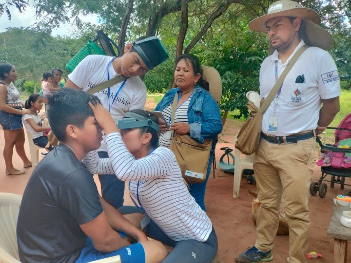 Chaco, Bolivia, 18 de marzo de 2024 (OPS)- En la Red de Salud Cordillera, en el seno del territorio guaraní, del departamento de Santa Cruz, se iniciaron las evaluaciones rápidas de tracoma, en el contexto de la implementación del proyecto mejorar la salud de las comunidades, las mujeres y las niñas y los niños mediante la eliminación del tracoma como problema de salud pública. Tras el recorrido de varias comunidades, las evaluaciones rápidas están en proceso de análisis, y en breve serán de conocimiento del Ministerio de Salud para poder planificar acciones para la prevención y atención de esta enfermedad en Bolivia.
