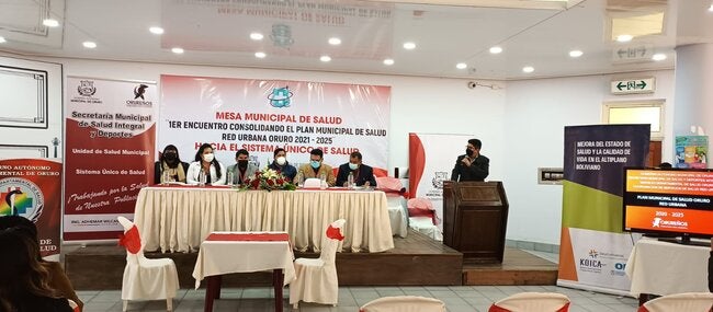 Oruro, 15 de julio de 2022 (OPS)- En línea con las estrategias nacionales, departamentales y el Plan Sectorial de Salud, en el municipio de Oruro se desarrolló la Mesa Municipal de Salud “1er Encuentro Consolidando el Plan Municipal de Salud – Red Urbana Oruro 2021-2025, hacia el Sistema Único de Salud".