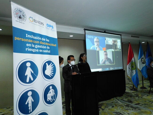 Las personas con discapacidad por su misma condición son más vulnerables y presentan mayores tasas de mortalidad, morbilidad y afectación en situaciones de desastres, en esa línea OPS/OMS ha desarrollado diferentes lineamientos, recomendaciones y documentos que permitan en lo que respecta a las necesidades y la inclusión de las personas con discapacidad en los programas de salud pública, impulsar acciones que mejoren la atención y el respeto de los derechos de las personas con discapacidad. Para ello se tiene planificado desarrollar una serie de capacitaciones de la metodología INGRID-H “Inclusión para la Gestión del Riesgo de Desastres en Hospitales” en seis hospitales del Sistema Nacional de Salud y el Instituto Guatemalteco de Seguridad Social (IGSS).