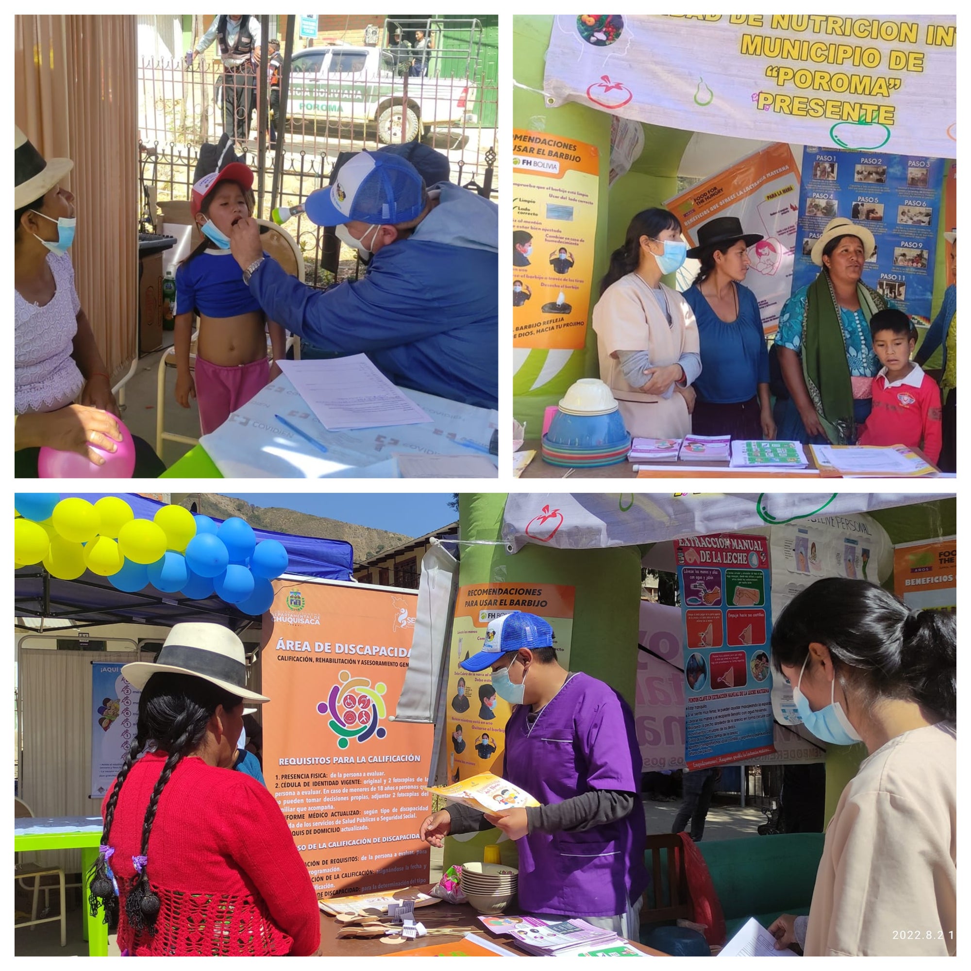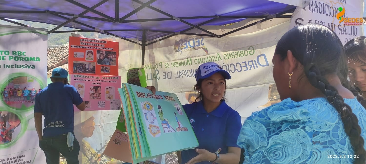 Participaron de la “Feria Multiprogramática con enfoque de Vacunación” el personal de salud del EESS “Virgen del Rosario” del municipio a la cabeza del responsable municipal de Salud, Efraín Ríos; Félix Tancara, gerente de la Red de Salud 7 (Sucre rural); 60 estudiantes de la Escuela Técnica de Enfermería de Poroma; además de personeros del SEDES Chuquisaca: Franklin Morales, responsable PAI, Henry Arando, jefe de la Unidad de Promoción de la Salud y Javier Mundocorre, responsable del Área de Discapacidad.