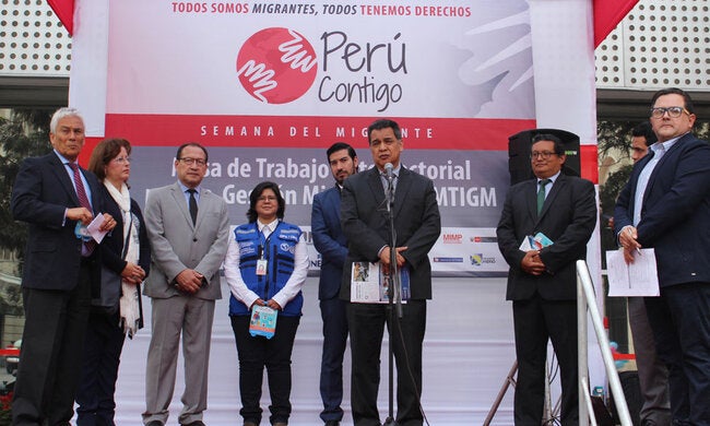 Lima, 19 de octubre de 2018.- El Ministerio de Relaciones Exteriores en coordinación con la agencia de Naciones Unidas para refugiados (ACNUR), la Organización Internacional de Migrantes (OIM), y el Grupo de Trabajo para migrantes conformado por las agencias del Sistema de las Naciones Unidas (OPS/OMS, PNUD, UNICEF, UNFPA, PMA, organizaciones no gubernamentales, y las instituciones del estado Peruano como el Ministerio de Salud, el Seguro Integral de Salud (SIS/MINSA), la Dirección Regional de Redes Integradas de Lima/Centro de Salud San Sebastián, Ministerio de la Mujer y Poblaciones Vulnerables, Ministerio de Educación, SUNAT, Fiscalía de la Nación y Grupo de Trabajo para la Gestión Migratoria, se realizó la Feria Informativa por el migrante en la Plaza San Pedro del cercado de Lima, en el marco de la V Edición de la Semana del Migrante: Perú-Contigo.